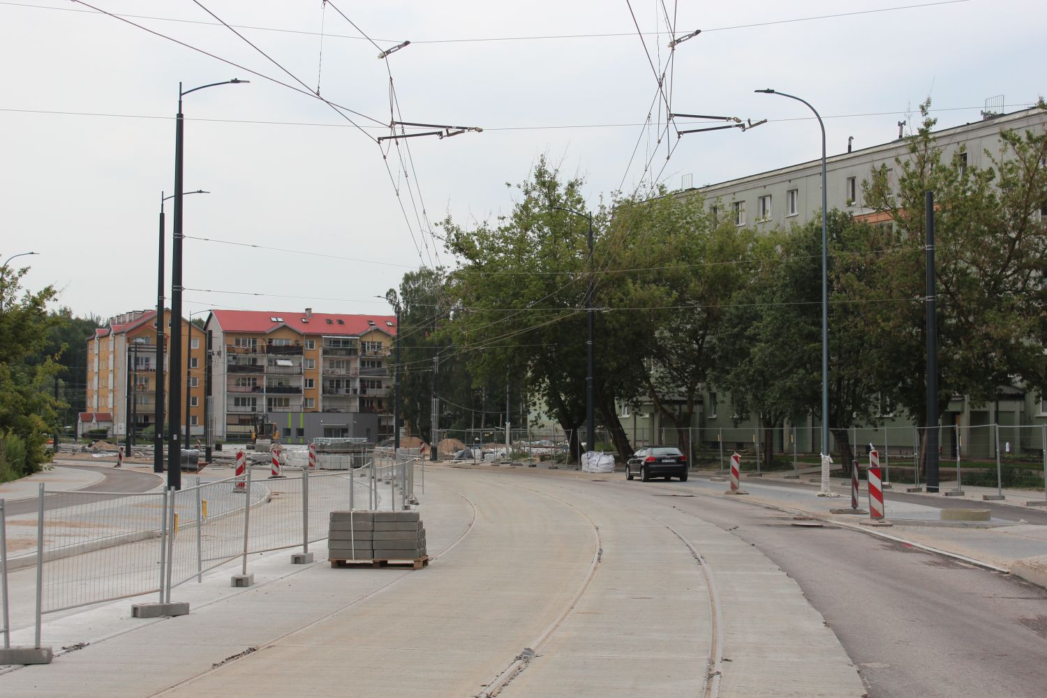Budowa linii tramwajowej w ulicy Wilczyńskiego, w pobliżu skrzyżowania z ulicą Wachowskiego (5 lipca 2023) © OlsztyńskieTramwaje.pl