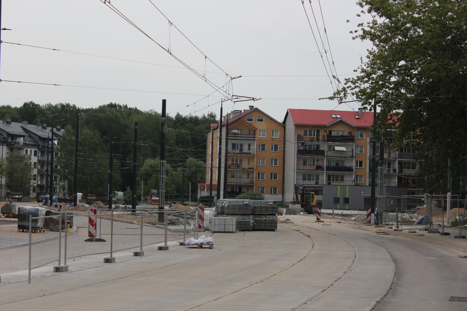 Budowa linii tramwajowej w ulicy Wilczyńskiego, w pobliżu przystanku końcowego Pieczewo (5 lipca 2023) © OlsztyńskieTramwaje.pl
