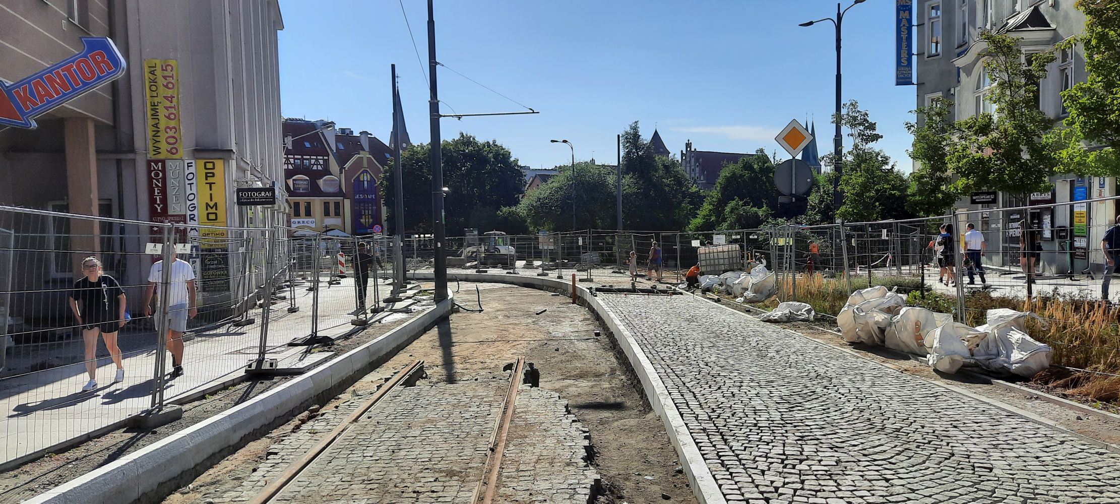 Budowa linii tramwajowej w ulicy 11 Listopada (12 sierpnia 2023) © OlsztyńskieTramwaje.pl