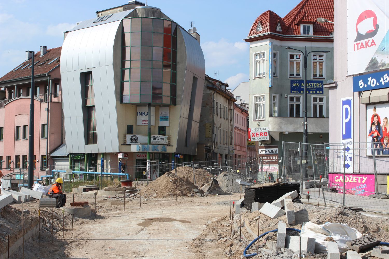 Budowa linii tramwajowej na placu Jedności Słowiańskiej (5 lipca 2023) © OlsztyńskieTramwaje.pl