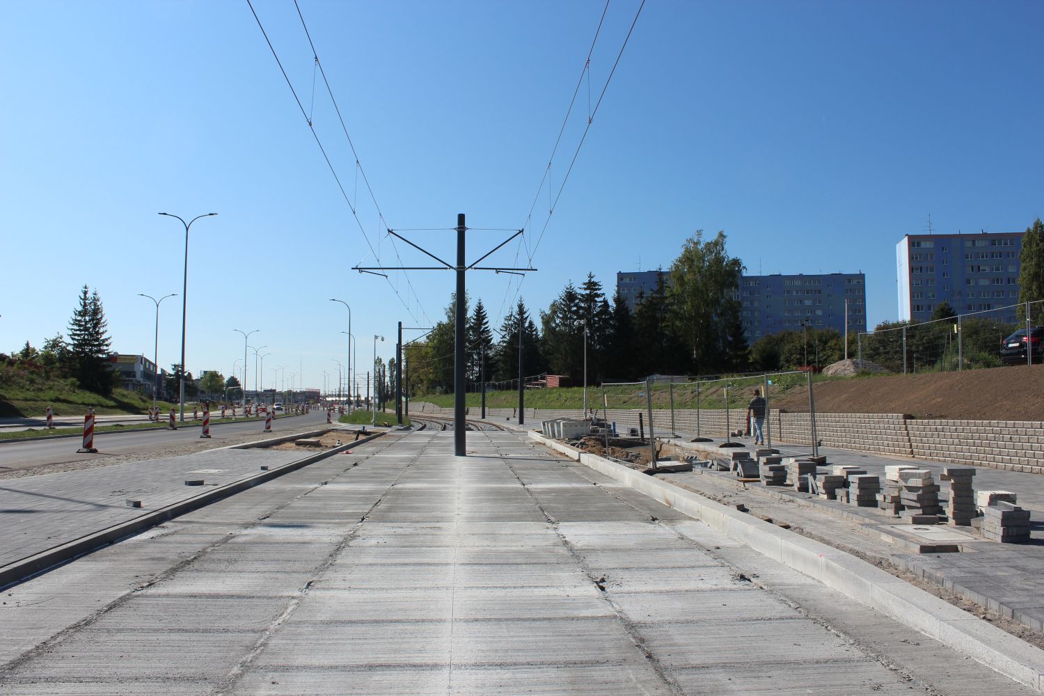 Budowa linii tramwajowej w ulicy Wyszyńskiego, przyszły przystanek w pobliżu skrzyżowania z ulicami Augustowską i Żołnierską (17 września 2023) © OlsztyńskieTramwaje.pl
