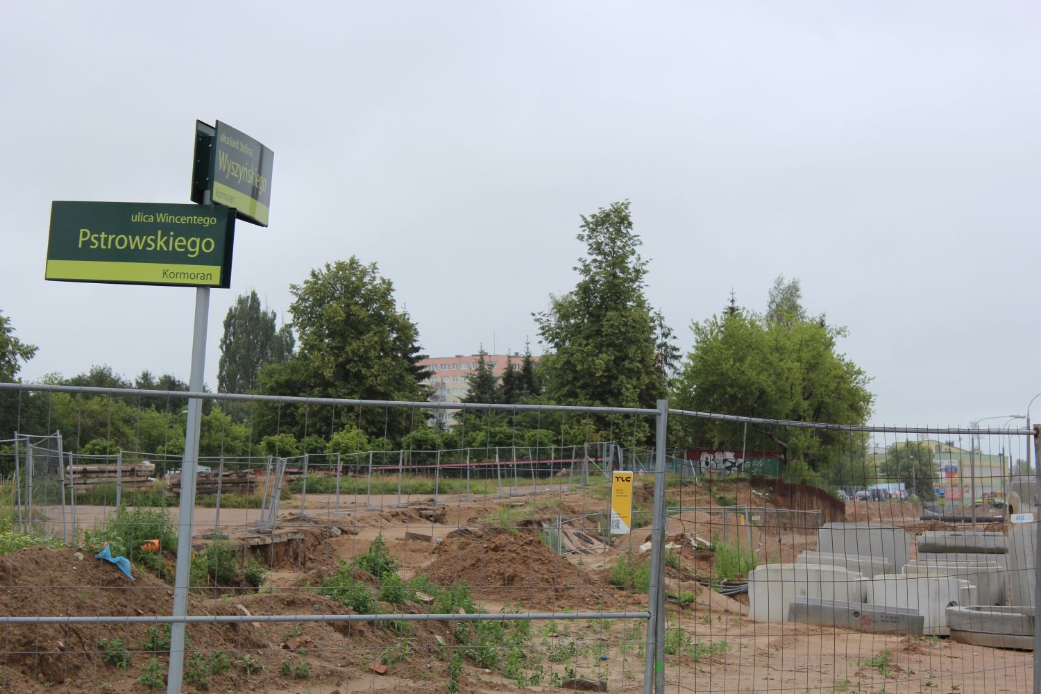 Budowa linii tramwajowej przy skrzyżowaniu ulic Wyszyńskiego, Pstrowskiego i Synów Pułku (2 lipca 2022) © OlsztyńskieTramwaje.pl