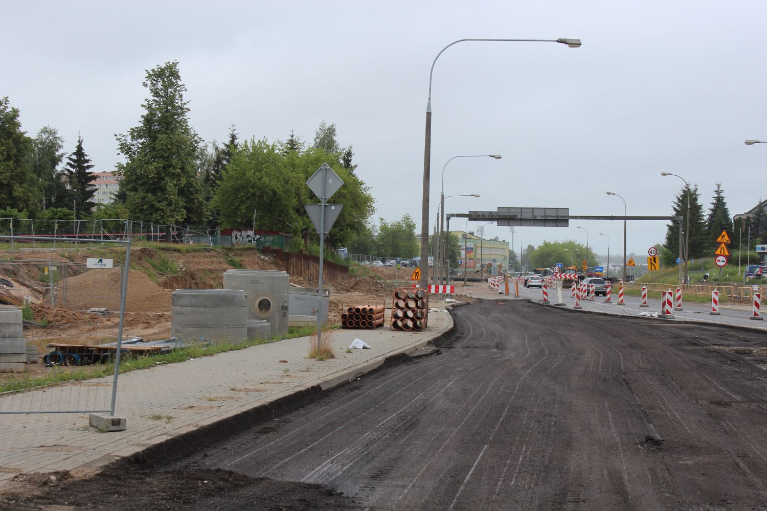 Budowa linii tramwajowej przy skrzyżowaniu ulic Wyszyńskiego, Pstrowskiego i Synów Pułku (2 lipca 2022) © OlsztyńskieTramwaje.pl