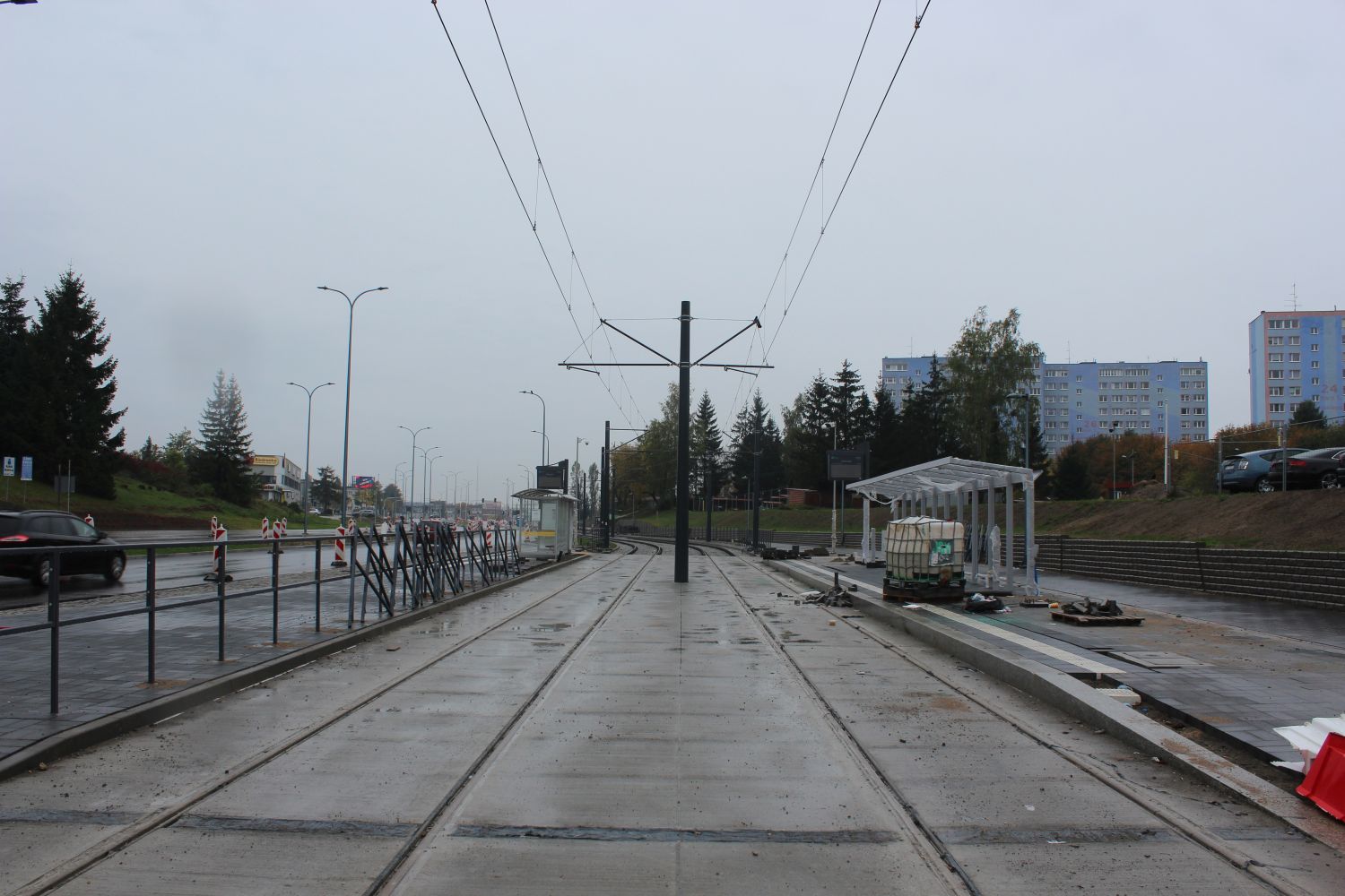 Budowa linii tramwajowej w ulicy Wyszyńskiego – przystanek Żołnierska (22 października 2023) © OlsztyńskieTramwaje.pl