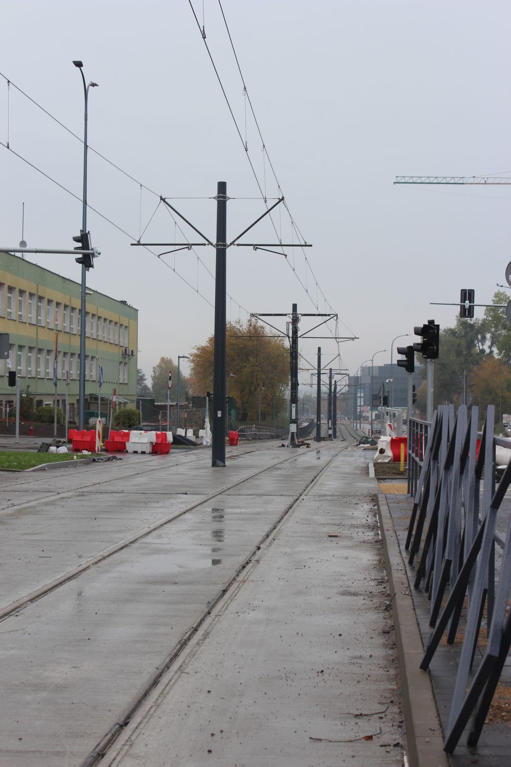 Budowa linii tramwajowej w ulicy Wyszyńskiego – przystanek Żołnierska (22 października 2023) © OlsztyńskieTramwaje.pl
