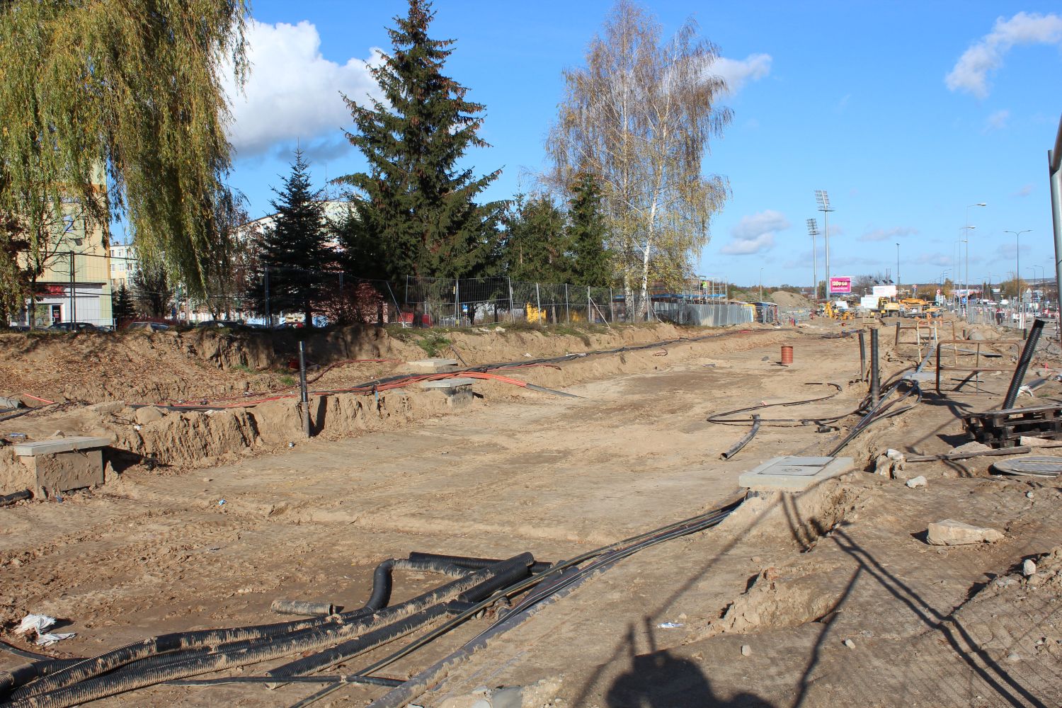 Budowa linii tramwajowej w ulicy Wyszyńskiego, między aleją Piłsudskiego a ulicą Żołnierską (3 listopada 2022) © OlsztyńskieTramwaje.pl